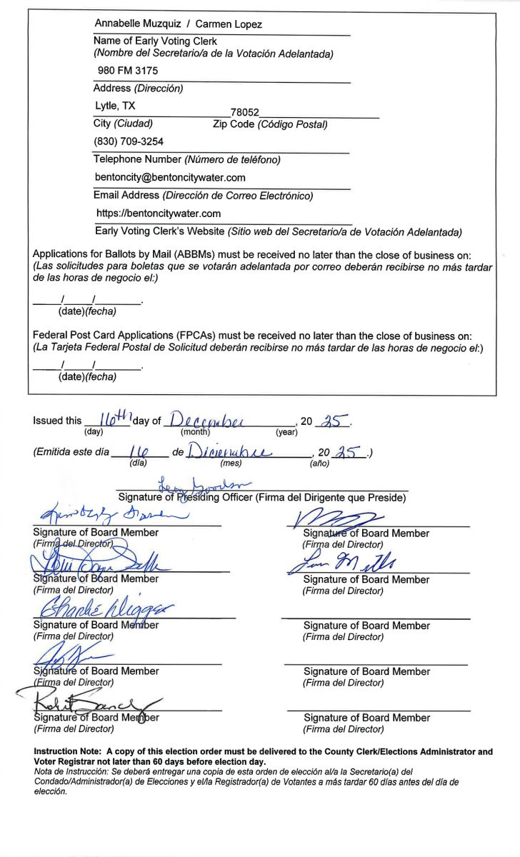 Benton City Water Office Monday – Friday 8 am-4:30 pm Phone # 830-709-3254